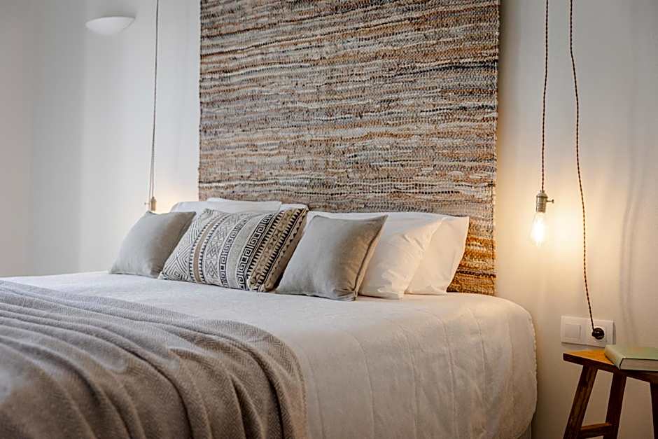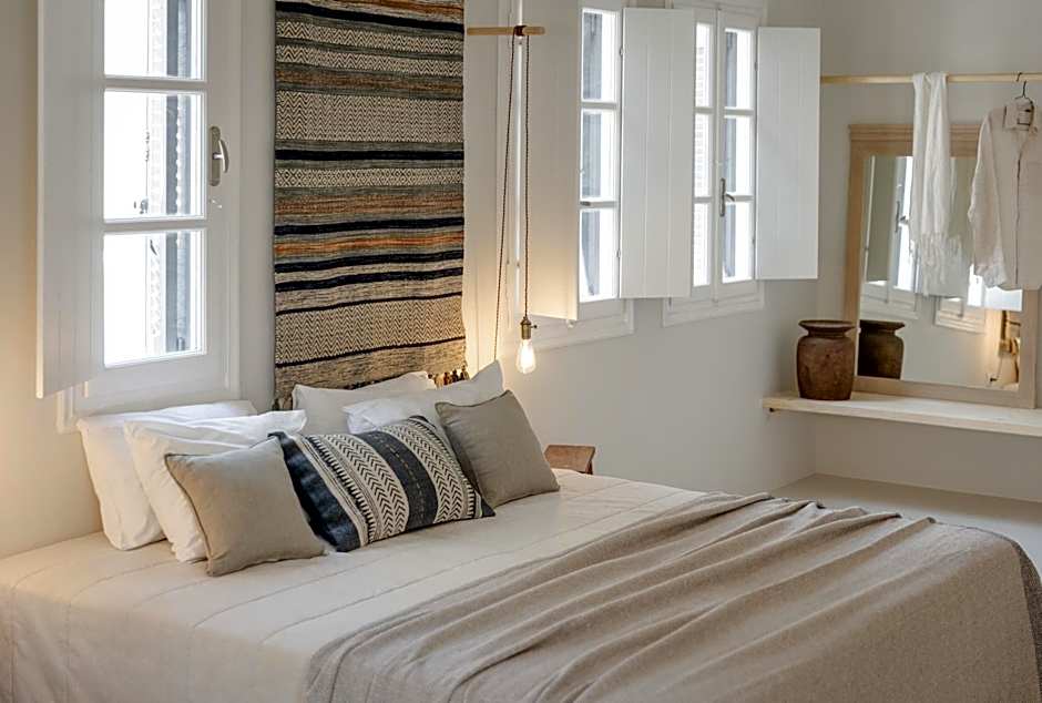 Unique maisonette with a separate bedroom on the upper floor and a living room on the ground floor decorated with handmade wooden tables and unique handcrafts. Featuring a large terrace, a workspace and a private balcony.